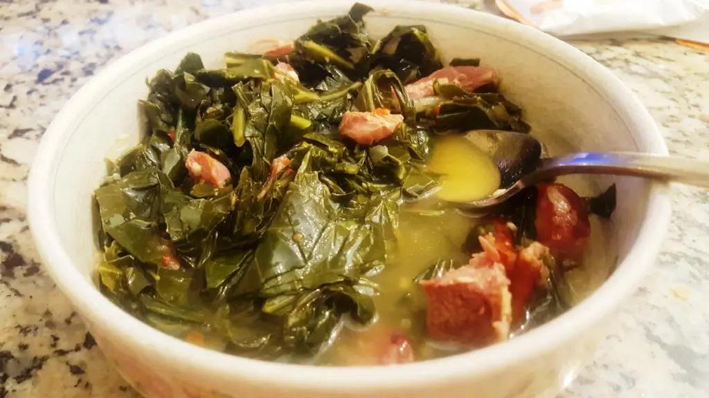 - Add collards and simmer at a very low heat at least until collards turn dark green.