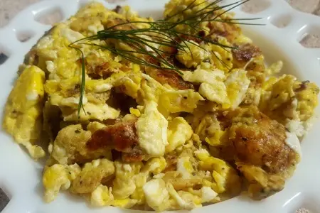 - Fold into the mixed eggs until the crust pieces are covered with egg.
