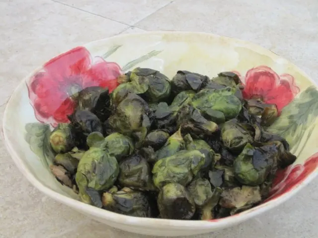 Wash and trim Brussels sprouts of any brown stems and leaves. Cut large sprouts in half. Place in shallow baking pan in 1 to 2 layers.