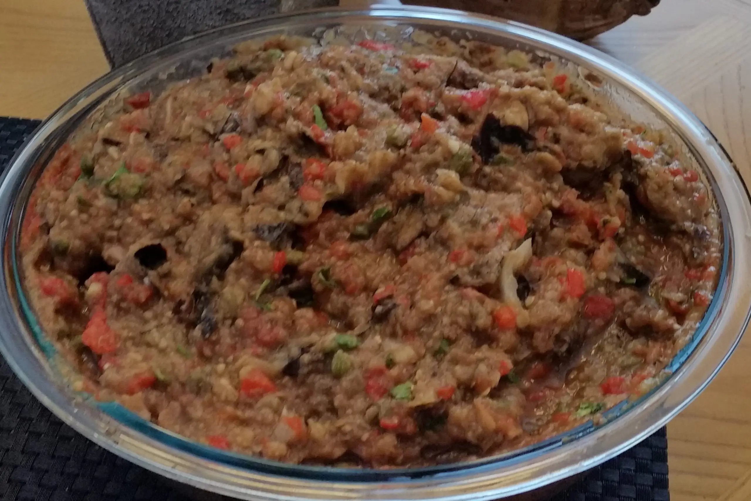 - Place the eggplant, peppers, and olives in the bowl of a food processor fitted with the steel blade and pulse until coarsely chopped.