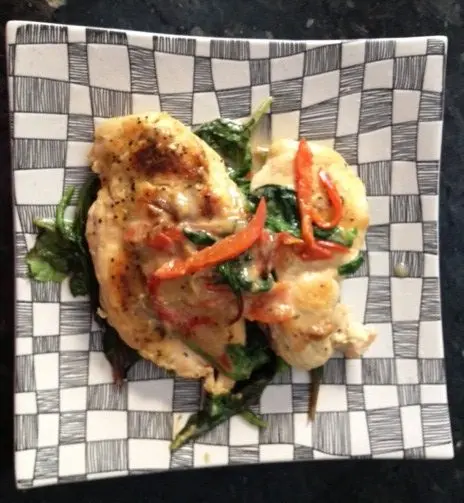 - Serve the chicken over a bed of wilted baby greens. Pour any leftover sauce over the plated dish.