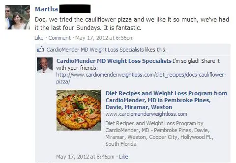 “Doc, we tried the cauliflower pizza and we like it so much, we’ve had it the last four Sundays. It is fantastic.”